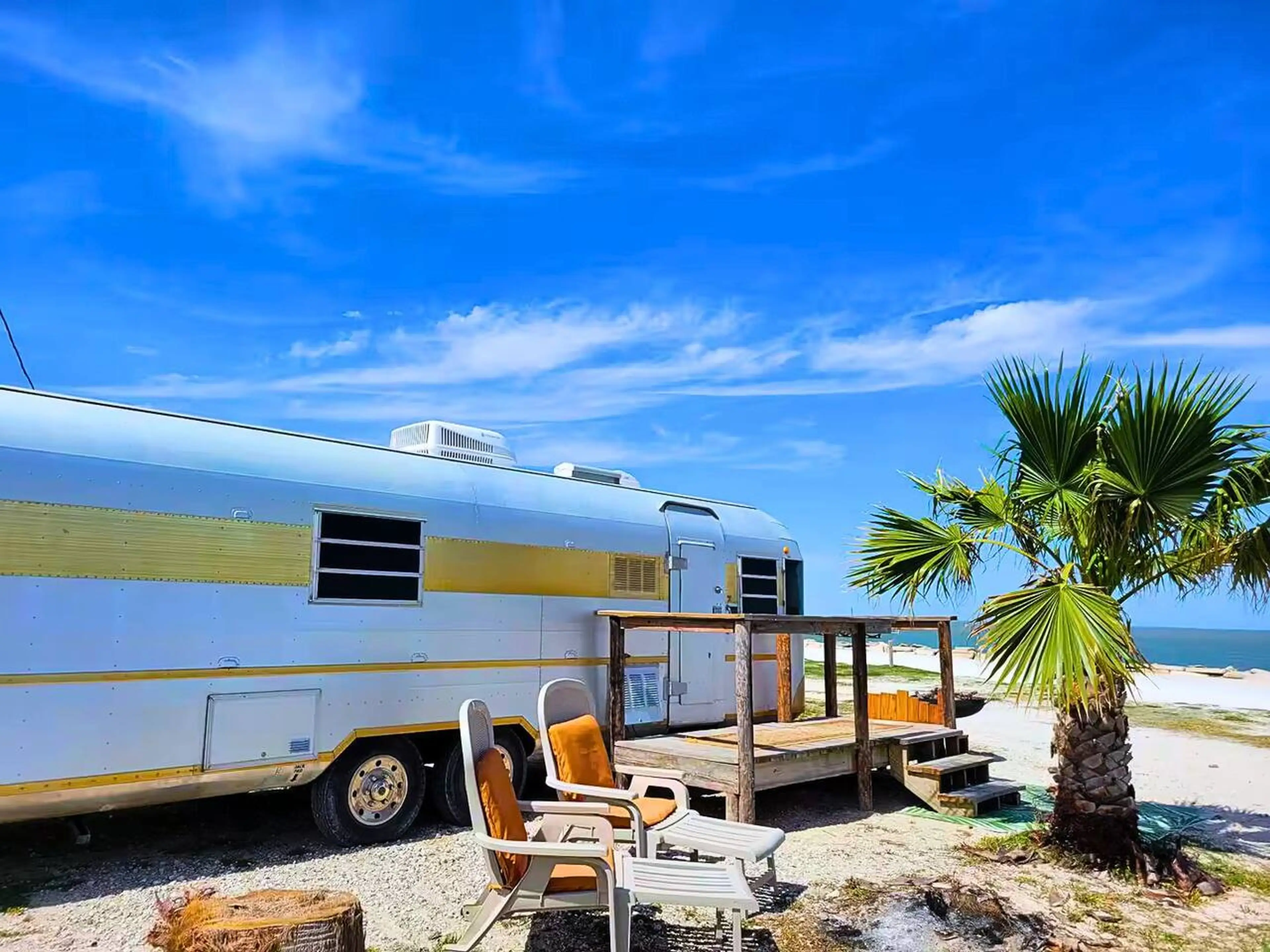 Cute vintage camper right on the beach! It was nicely decorated,comfortable and clean with everything you need (pots, pans, cups, plates and utensils). Has a nice little firepit and access to a lighted pier. The hosts were welcoming and checked to make sure we had everything we needed.